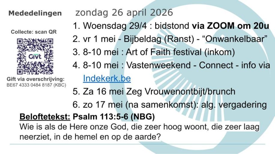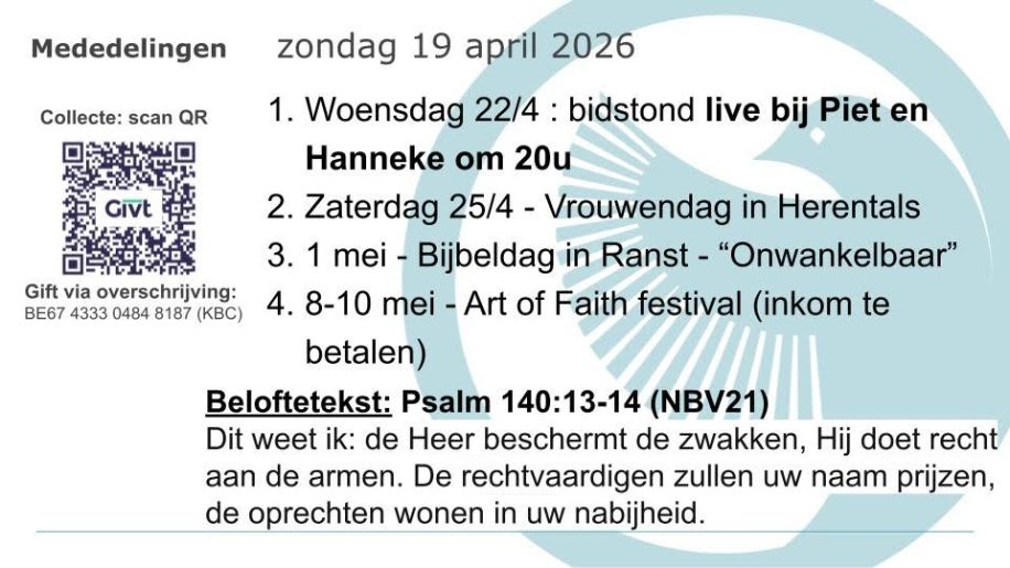 Wekelijkse gebedsavond (alternerend online en live in de kerk).